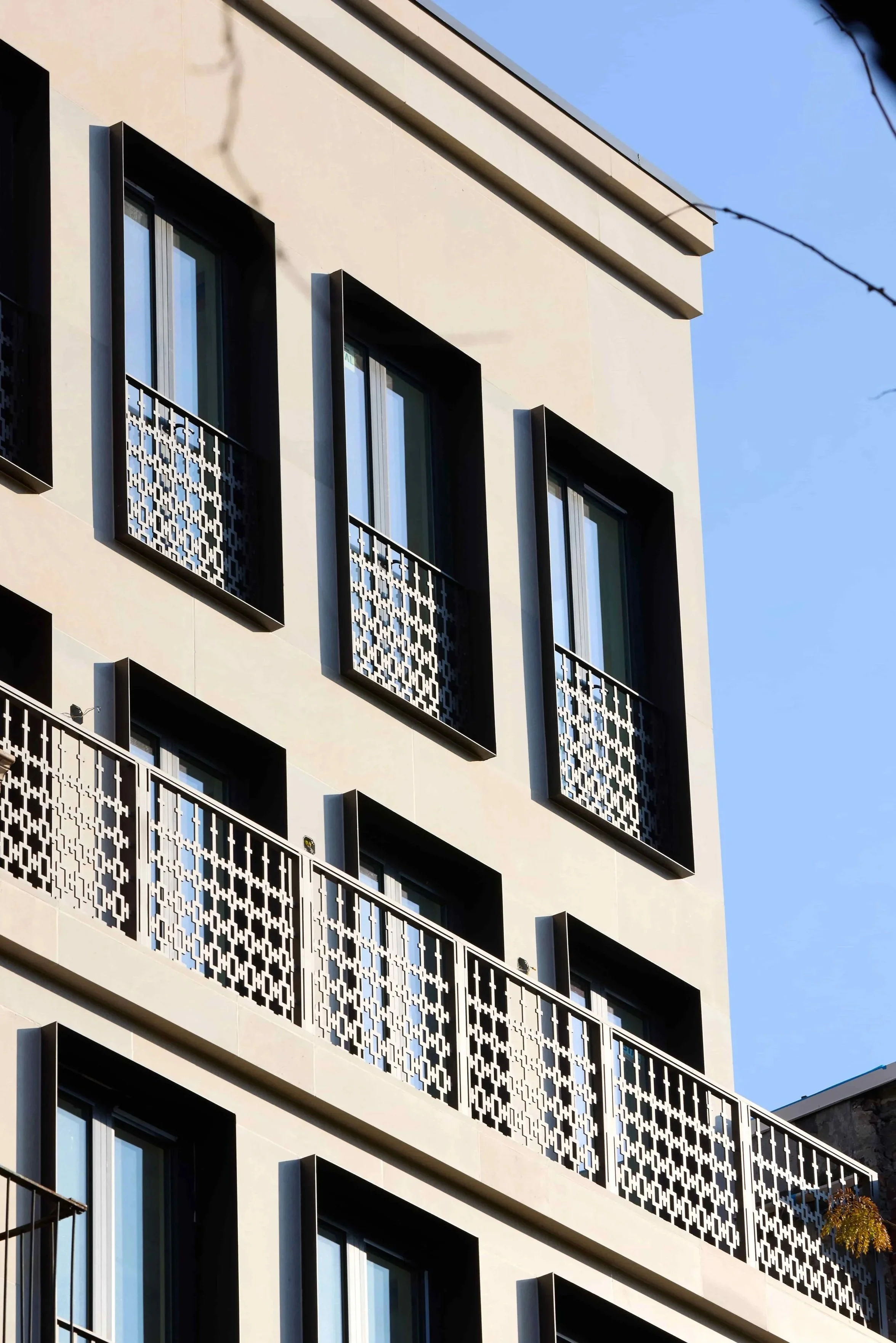 The guardrails feature a custom-designed pattern crafted using state-of-the-art digital fabrication.
