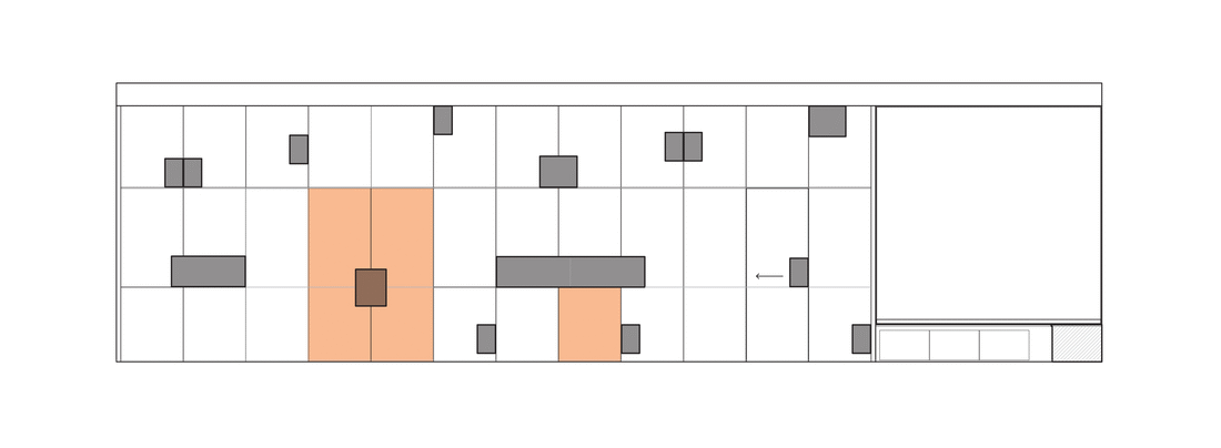 We created a large skylight and center atrium to allow light in, cascading down a series of resin cubes, illuminating the space as it descends, and terminating in rectangles of light on the ground floor.